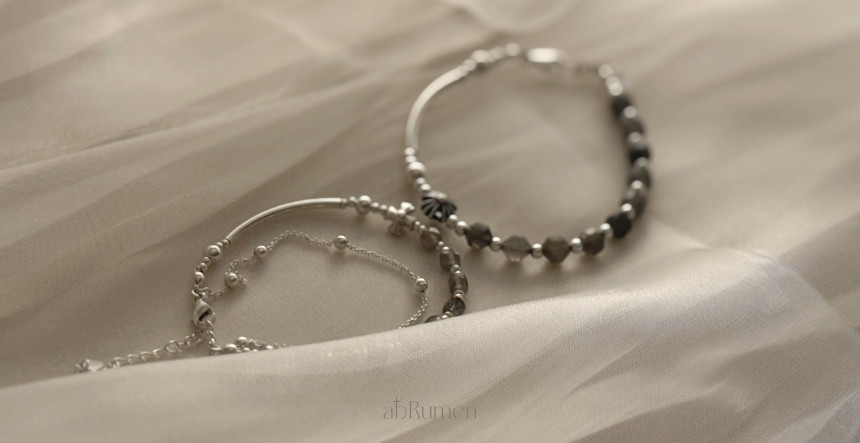 함께 착용할 때 더욱 특별한 의미를 지니는 아브루멘의 묵주팔찌입니다.