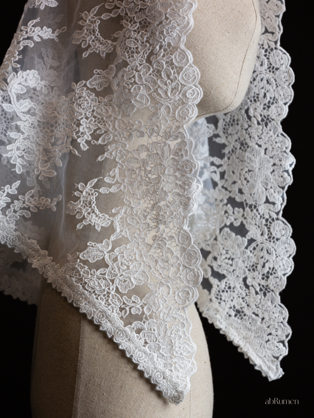 abRumen의 미사보는 단정하고 우아한 분위기로 혼배미사의 순간에도 잘 어울립니다.