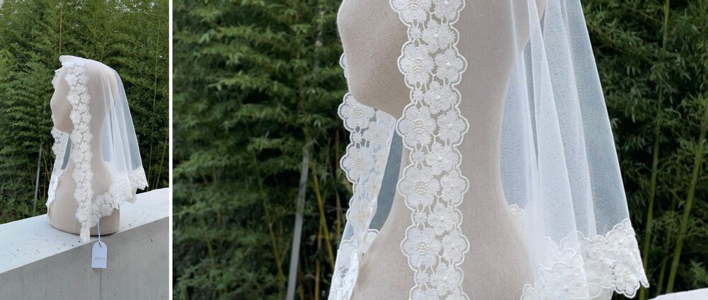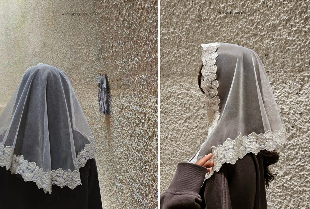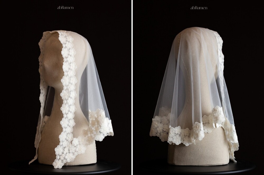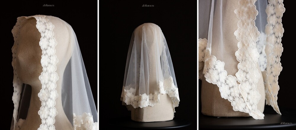 abRumen의 미사보는 단정하고 우아한 분위기로 혼배미사의 순간에도 잘 어울립니다.