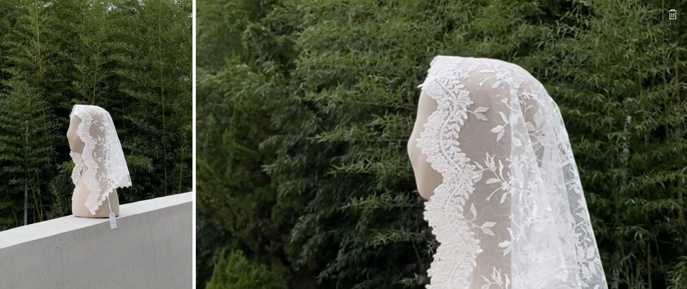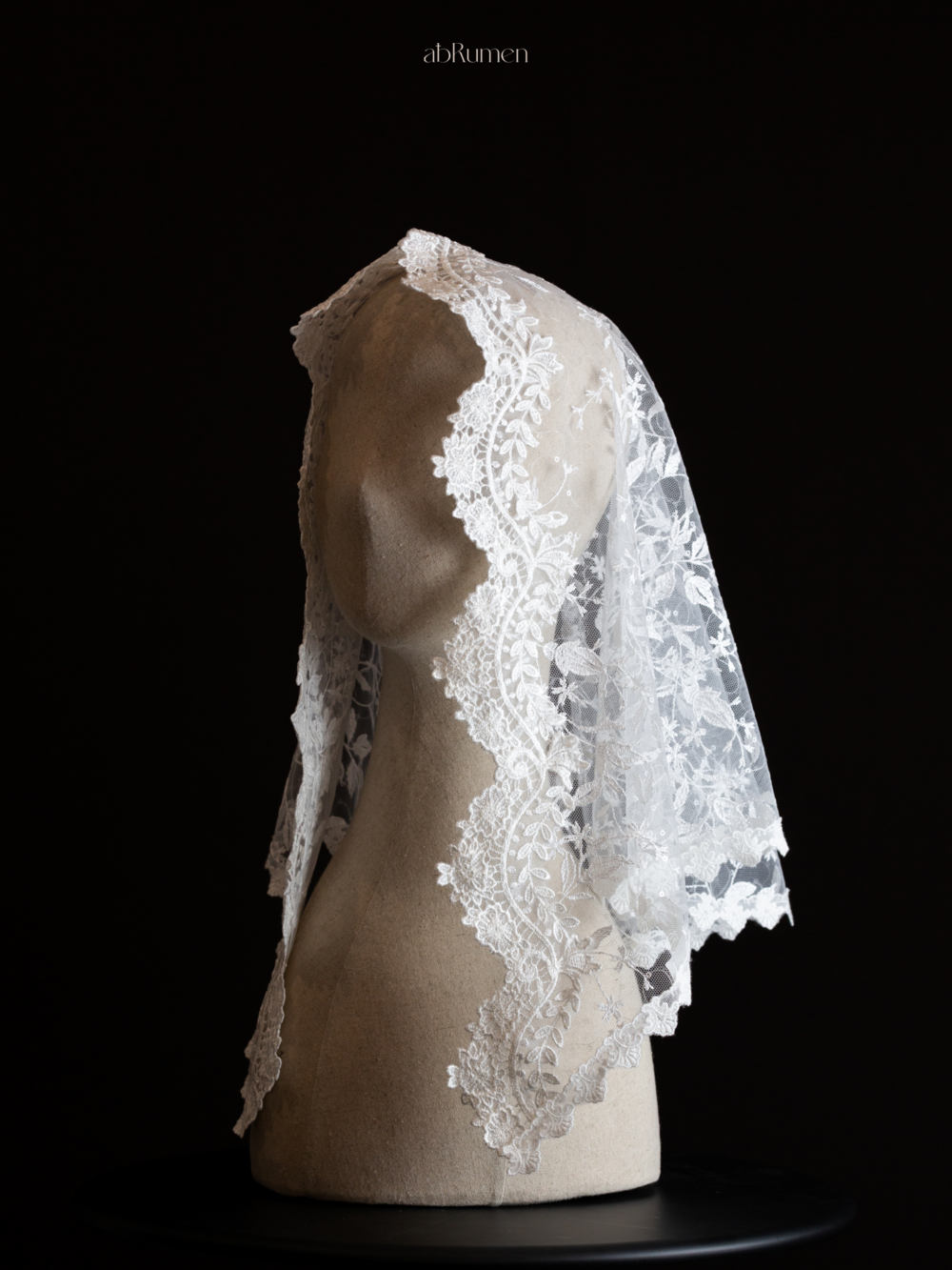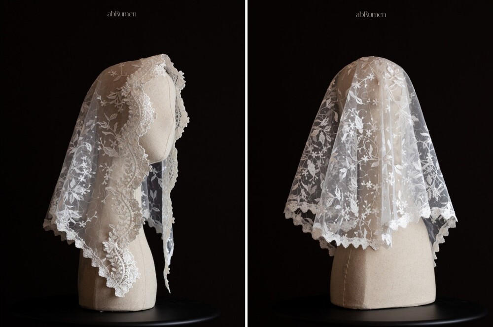 abRumen의 미사보는 단정하고 우아한 분위기로 혼배미사의 순간에도 잘 어울립니다.