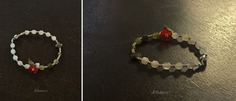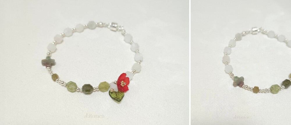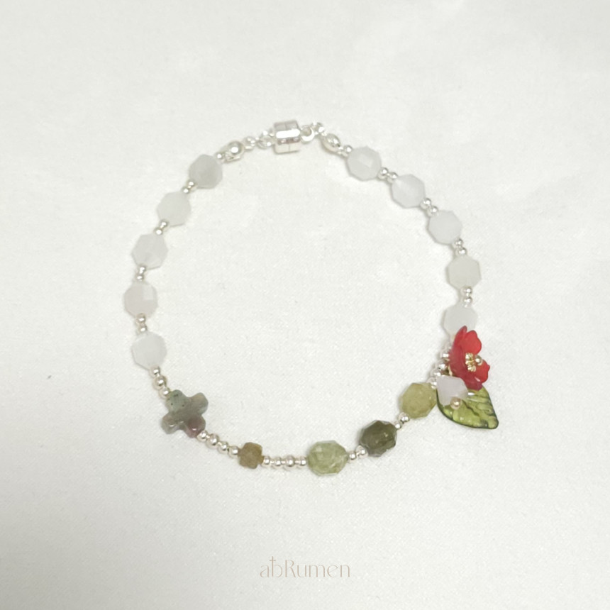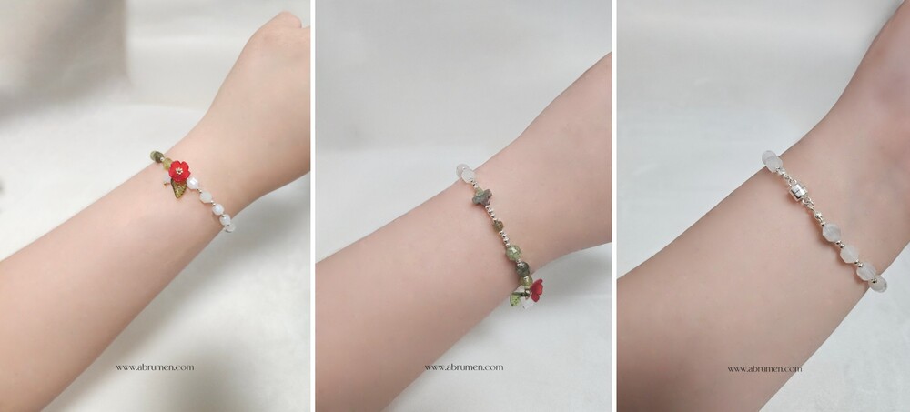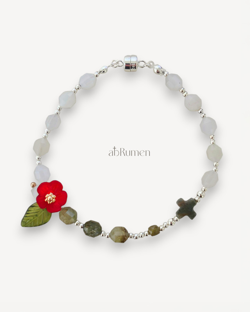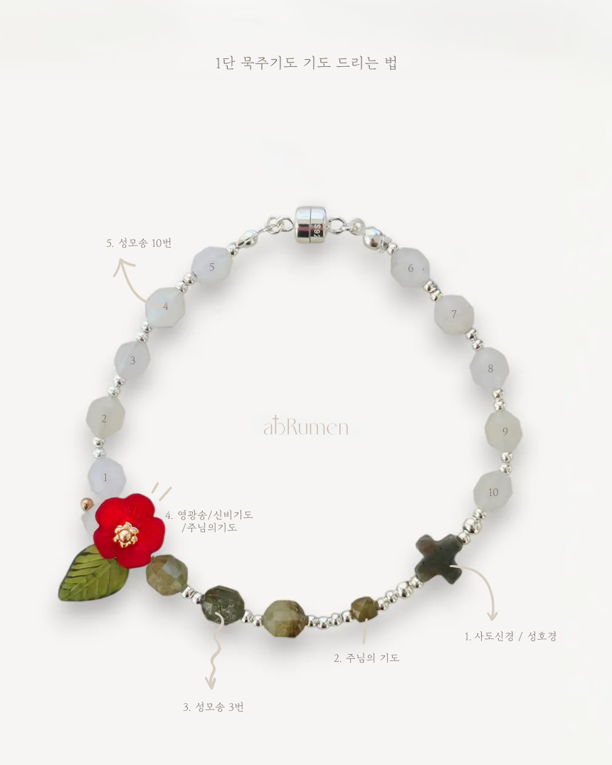 아브루멘의 카멜리아 묵주팔찌는 일상 속에서 특별한 포인트가 되어줍니다.