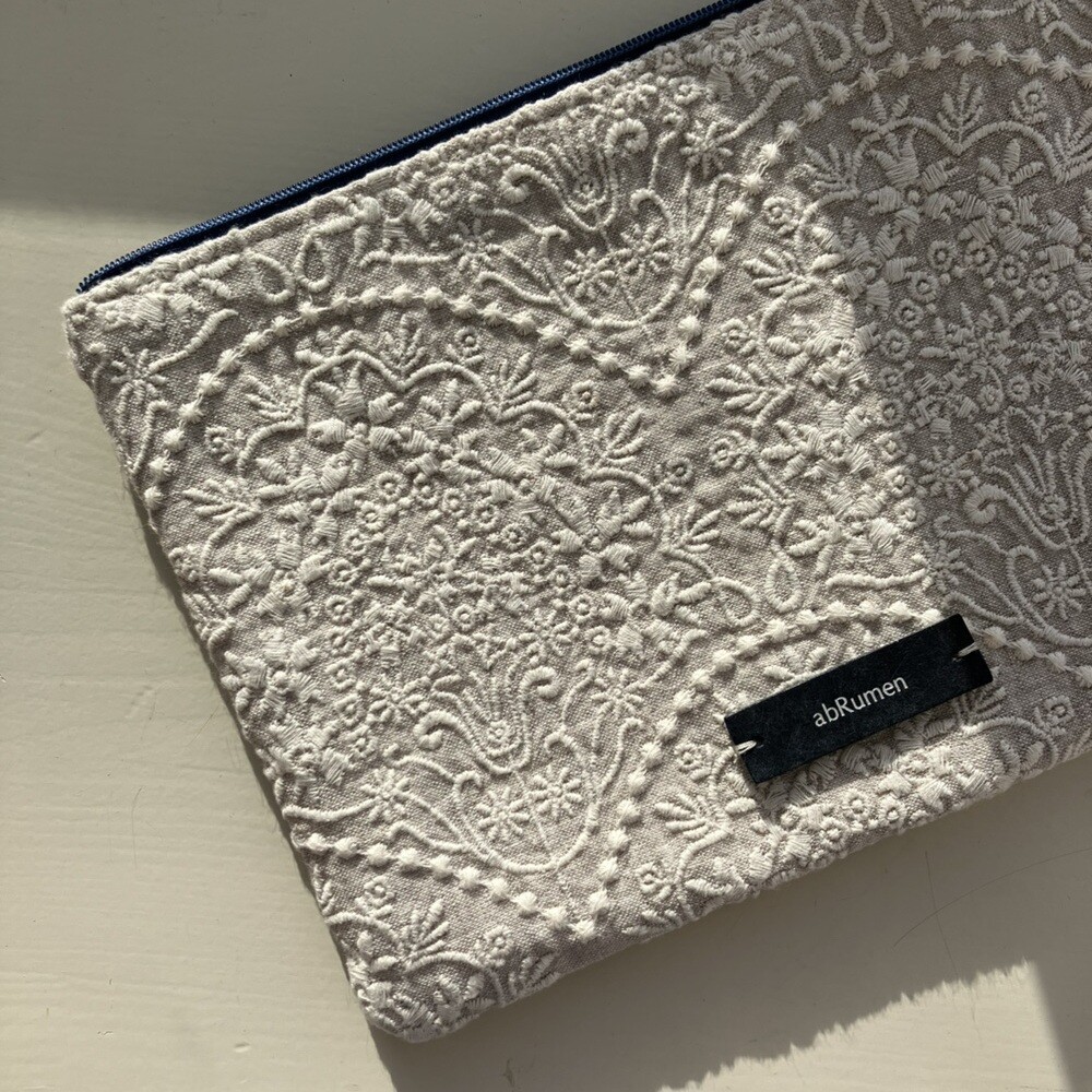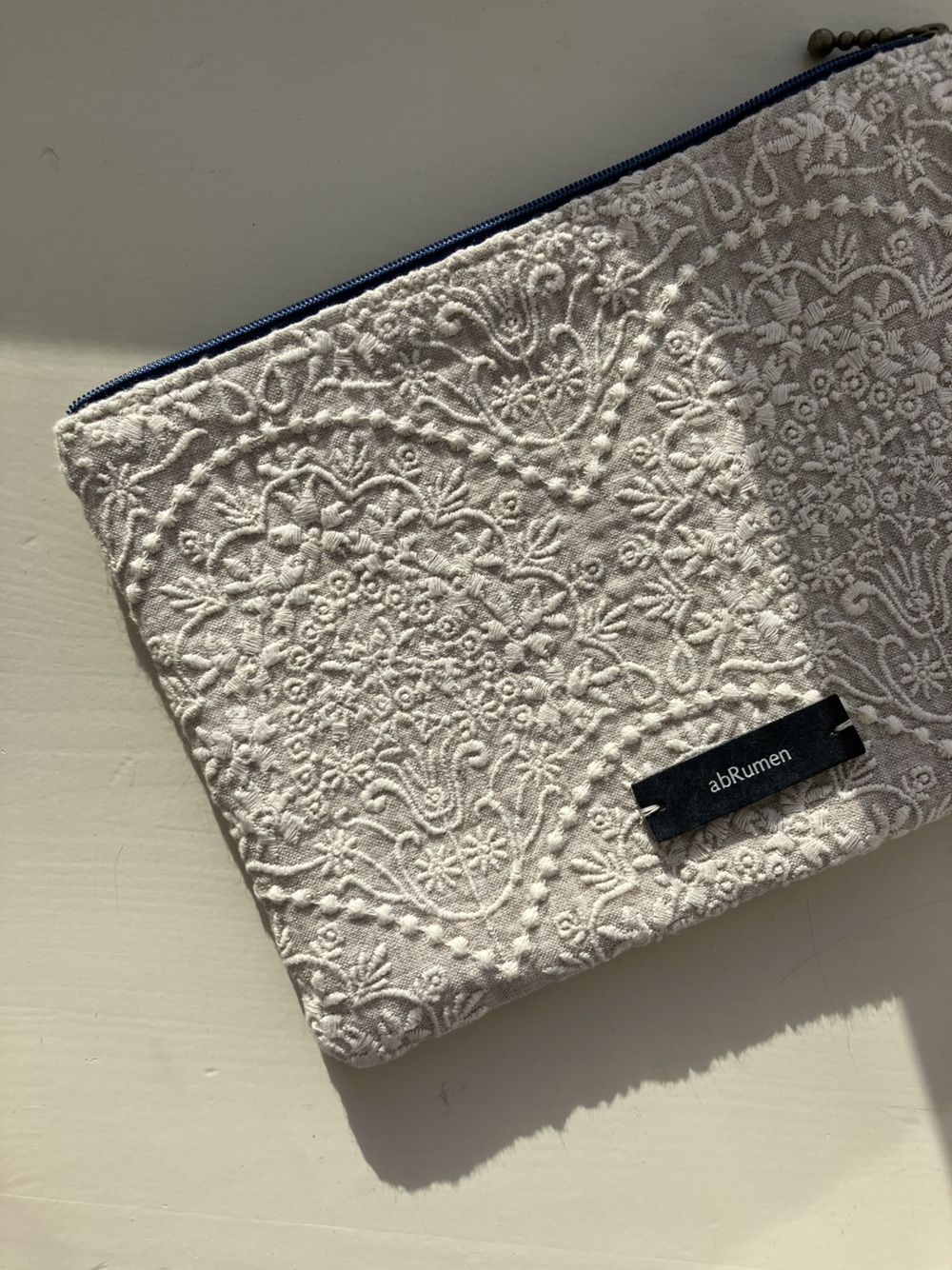 밝은 베이지 원단과 아이보리 자수가 어우러진, 담백하고 우아한 무드로