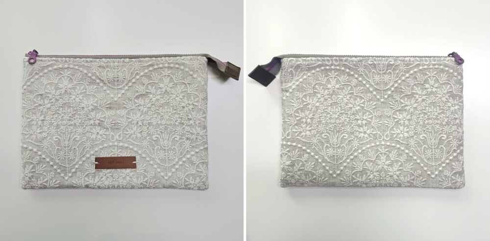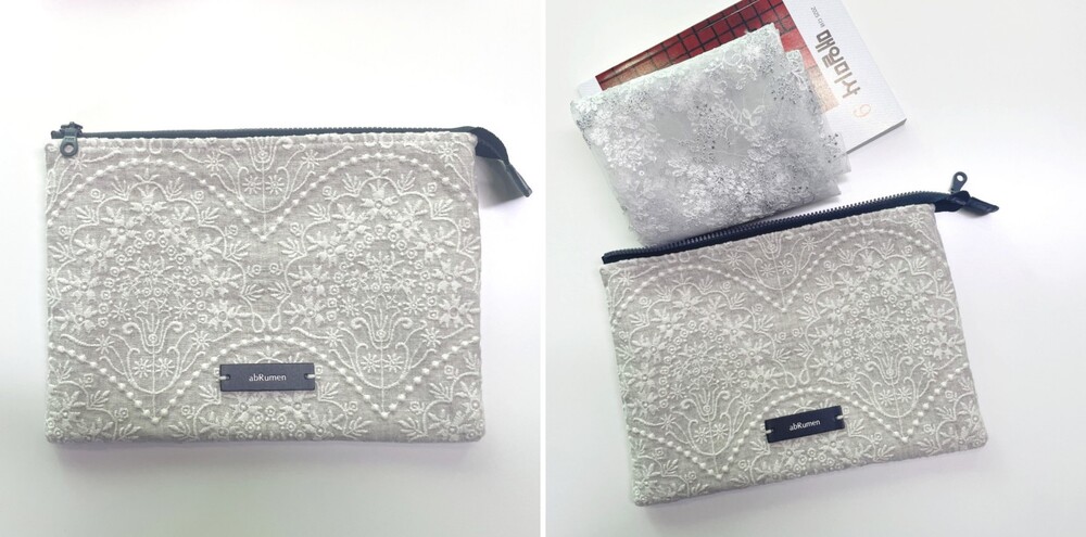 “레이스와 일상 소지품을 정제된 방식으로 보관할 수 있는 듀얼 스토리지 파우치”
