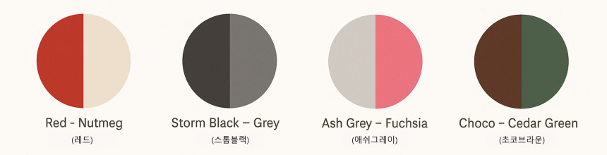“왼쪽은 지퍼 테이프 컬러, 오른쪽은 메탈 컬러를 나타냅니다.