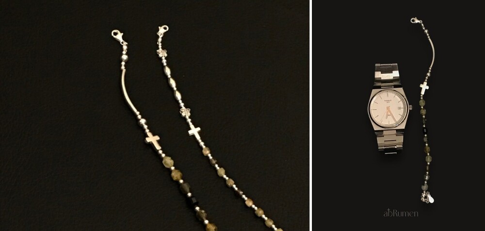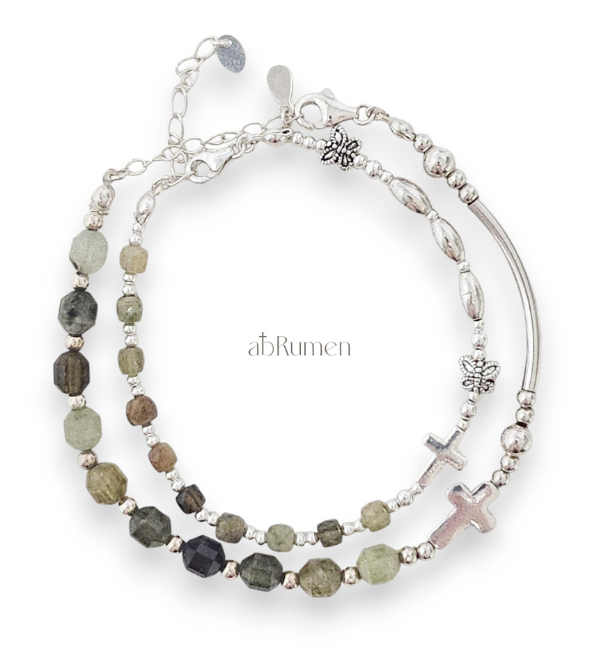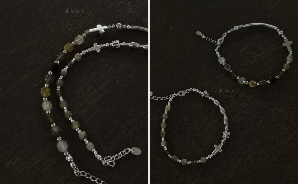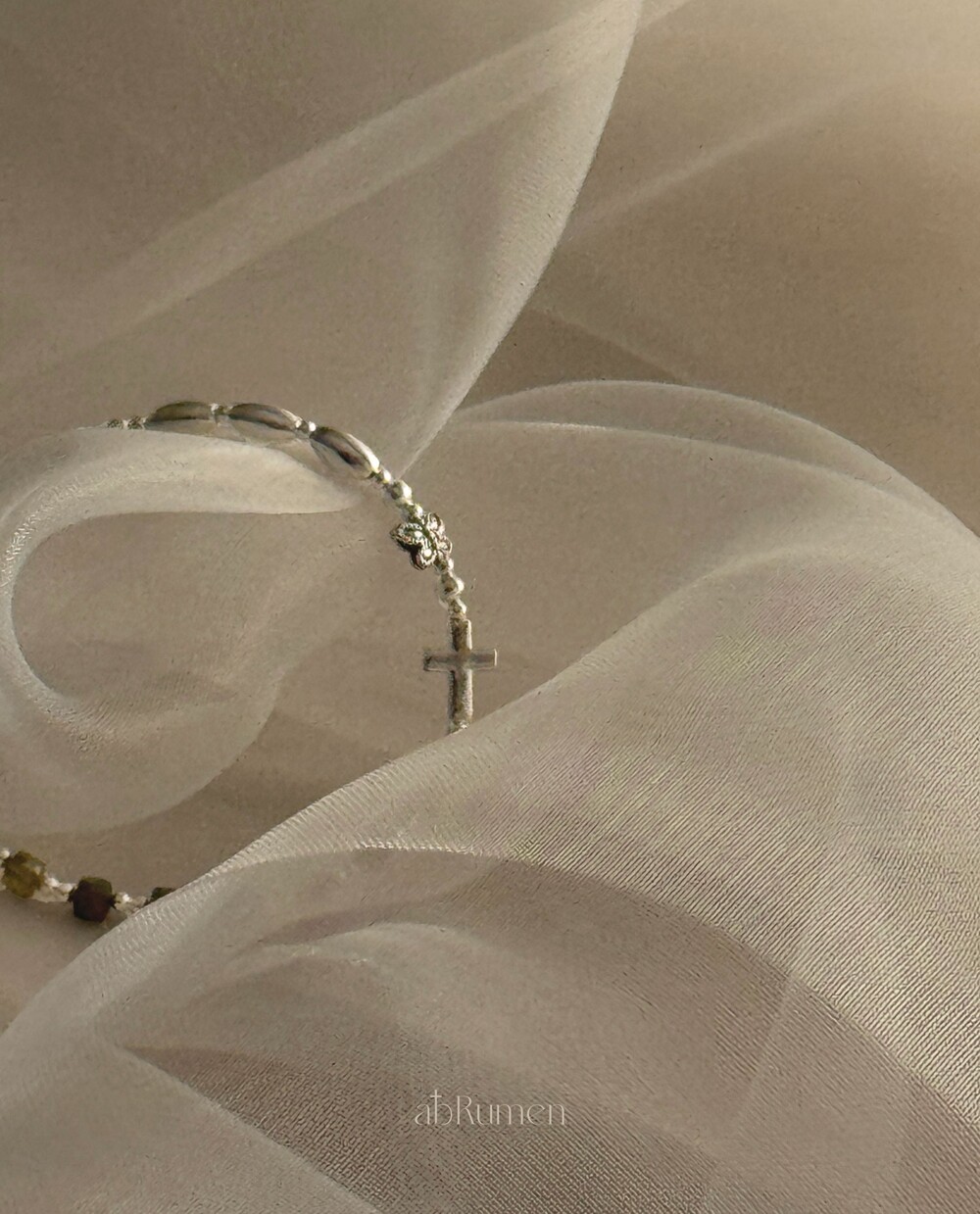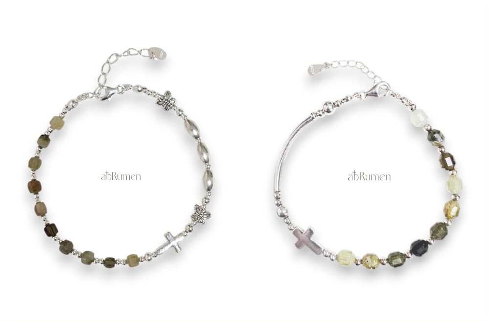 "평화·축복·화해의 상징, 그린가넷과 스털링실버로 완성한 데일리 묵주팔찌 세트"
