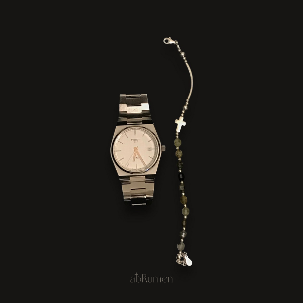 여성용은 섬세한 곡선 바와 균형 잡힌 원석 배열로 손목 위에 가볍게 감기며, 다양한 스타일에 은은한 포인트를 더합니다.